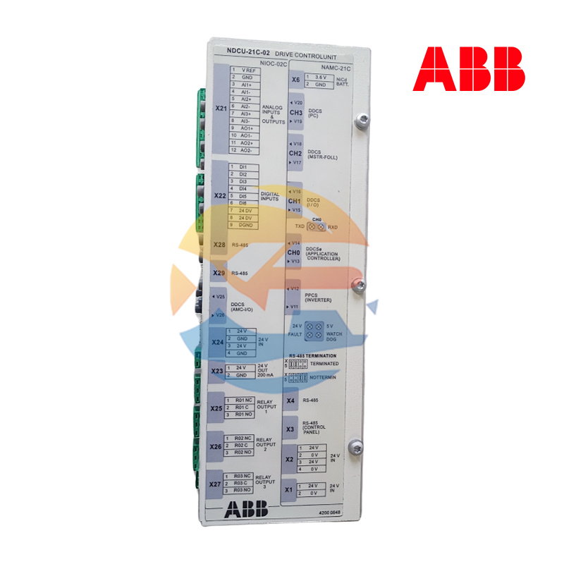 The ABB NDCU-21C is a drive control unit manufactured by ABB, belonging to the ACS series. It is designed to control the speed and torque of AC motors